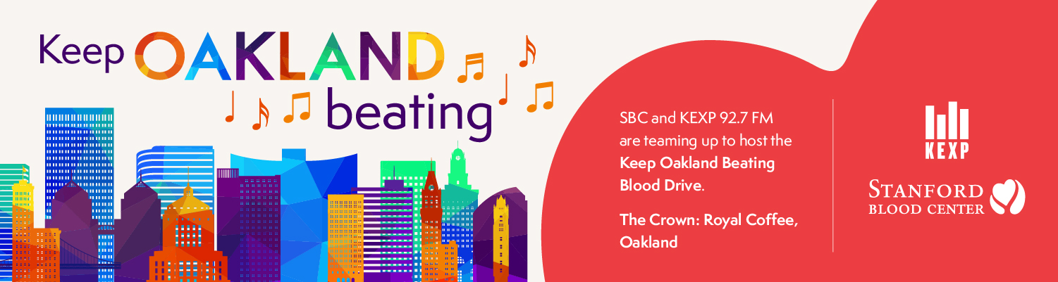 Stanford Blood Center and KEXP Radio are teaming up to host the Keep Oakland Beating Blood Drive, bringing neighbors together to help save lives, connect with the community, and enjoy great prizes.