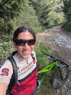 Later I took up road cycling and started wondering how I could use my love of cycling to help leukemia patients. Lo and behold, Blood Cancer United (formerly the Leukemia & Lymphoma Society, or LLS) helps organize America’s Most Beautiful Bike Ride (AMBBR), a 100-mile ride in Lake Tahoe. I raised over $6,000 for Blood Cancer United with their charity ride. Around this time, I started thinking about donating blood again. I learned about Stanford Blood Center (SBC), and the Hillview Avenue location in Palo Alto was perfect between my office in Campbell and home in San Bruno. I also learned that SBC had a very attractive cycling jersey with their logo on it. I started donating platelets on a weekly basis which meant that I’d earn that gorgeous jersey quickly! Today, I have four of my own and have gifted three more.